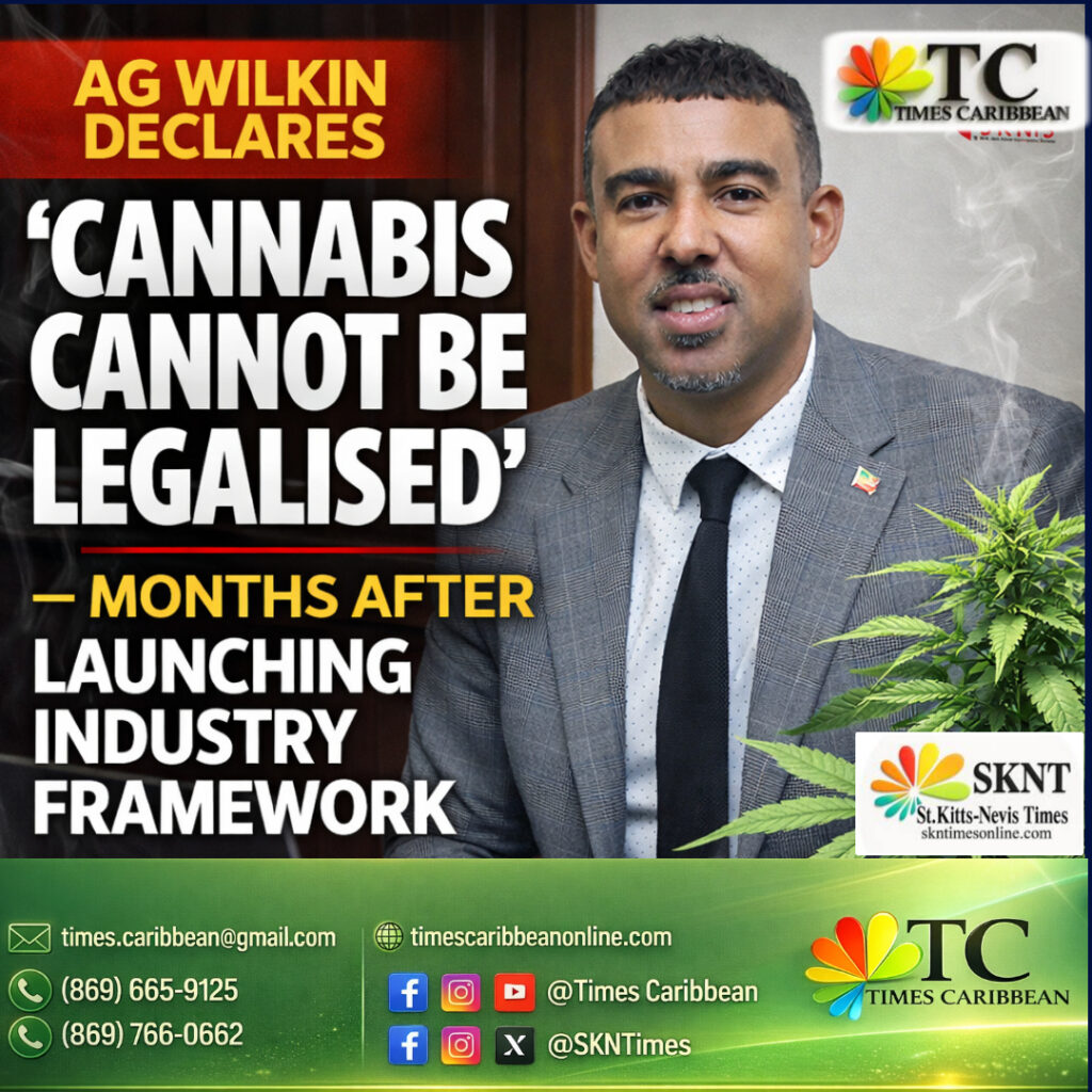 BASSETERRE, ST. KITTS — In a stunning and sharply polarizing declaration that has ignited national debate, Attorney General and Minister of Justice and Legal Affairs, Garth Wilkin, has effectively slammed the brakes on any expectation of full cannabis legalization in Saint Kitts and Nevis—less than a year after the government rolled out what many believed was the foundation of a thriving cannabis industry.