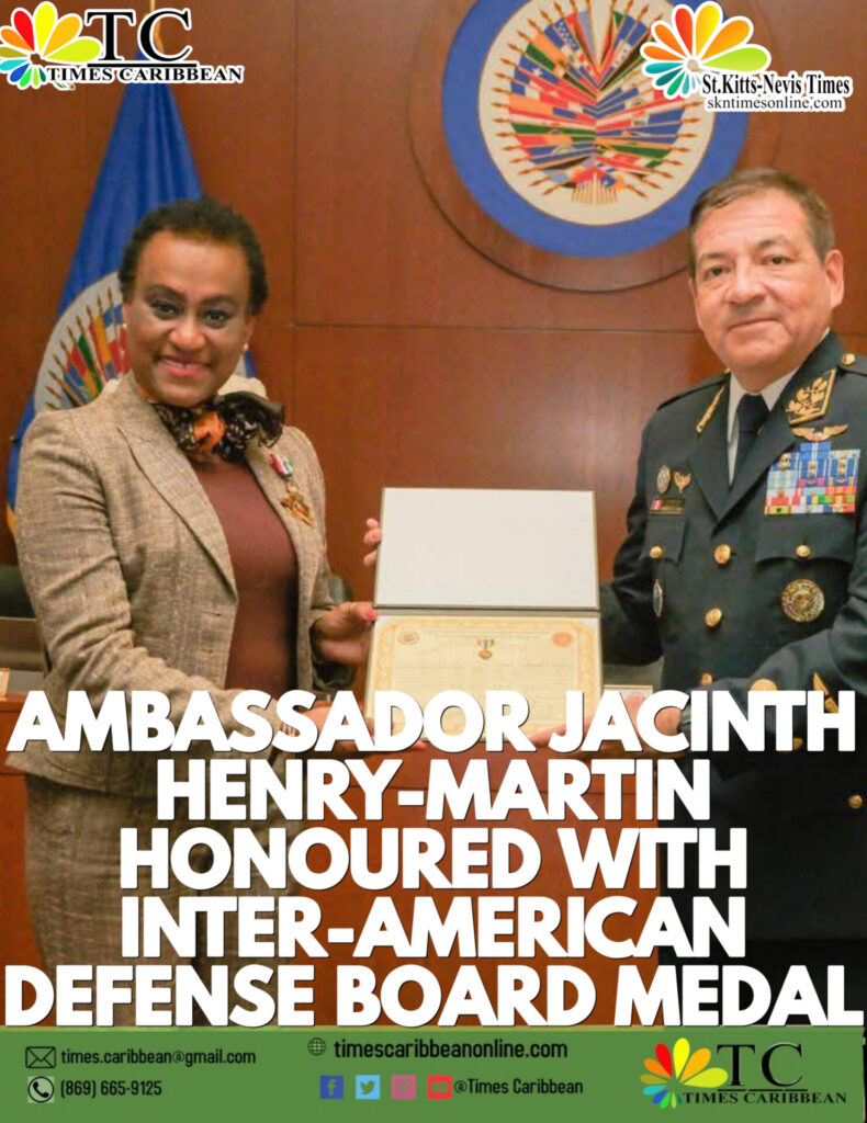 In a moment of immense national pride, Her Excellency Jacinth Henry-Martin, Ambassador of St. Kitts and Nevis to the United States and Permanent Representative to the Organisation of American States (OAS), has been awarded the Inter-American Defense Board (IADB) Medal, one of the hemisphere’s most distinguished symbols of service to peace, cooperation, and security.