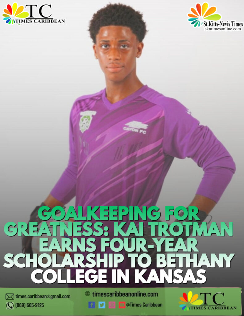Basseterre, St. Kitts – St. Kitts & Nevis national goalkeeper Kai Trotman is headed to the United States on a four-year football scholarship to Bethany College in Kansas — a monumental achievement that highlights the power of opportunity, discipline, and community support.