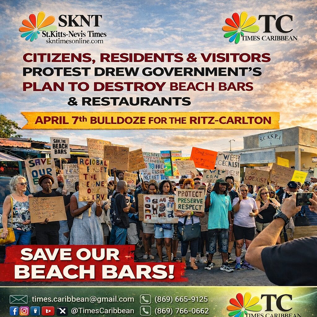CITIZENS, RESIDENTS AND VISITORS PROTEST THE PM DREW GOVERMENTS PLAN TO DESTROY BEACH BARS AND RESTAURANTS ON APRIL 7TH TO ACCOMODATE RITZ CARLTON
