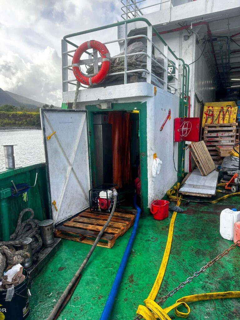 The response team also transported divers, gear, and essential tools to facilitate hull inspections and emergency repairs. The cargo onboard was carefully removed, and plans were made for a tug boat to pull the damaged vessel off the shoreline and transport it to safety for further repairs.