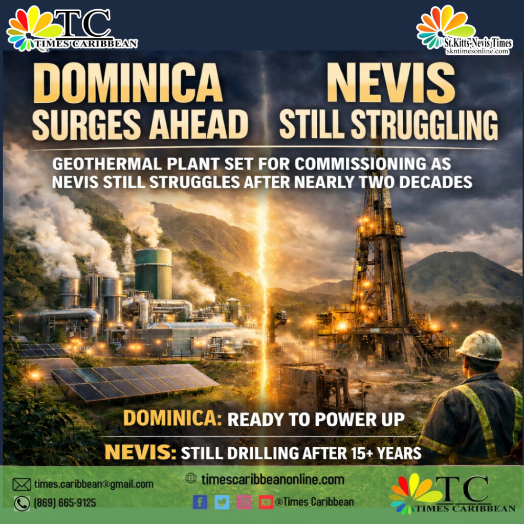 The contrast has ignited renewed debate across the region about leadership, project management, and missed economic opportunities as Dominica prepares to flip the switch on a 10-megawatt geothermal power facility valued at approximately US$34.8 million, while the Nevis geothermal project—once considered the region’s pioneer—continues to drill wells with no commercial plant in sight.