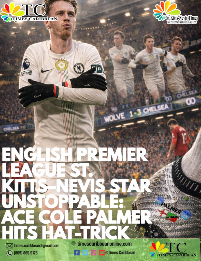 St. Kitts and Nevis football fans woke up to another reminder that their own is shining on the world’s biggest stage. Wearing boots emblazoned with the St. Kitts and Nevis flag in honour of his grandfather and family roots, Cole Palmer delivered a breathtaking, ruthless hat-trick as Chelsea FC dismantled Wolverhampton Wanderers FC 3–1 at a rain-soaked Molineux.