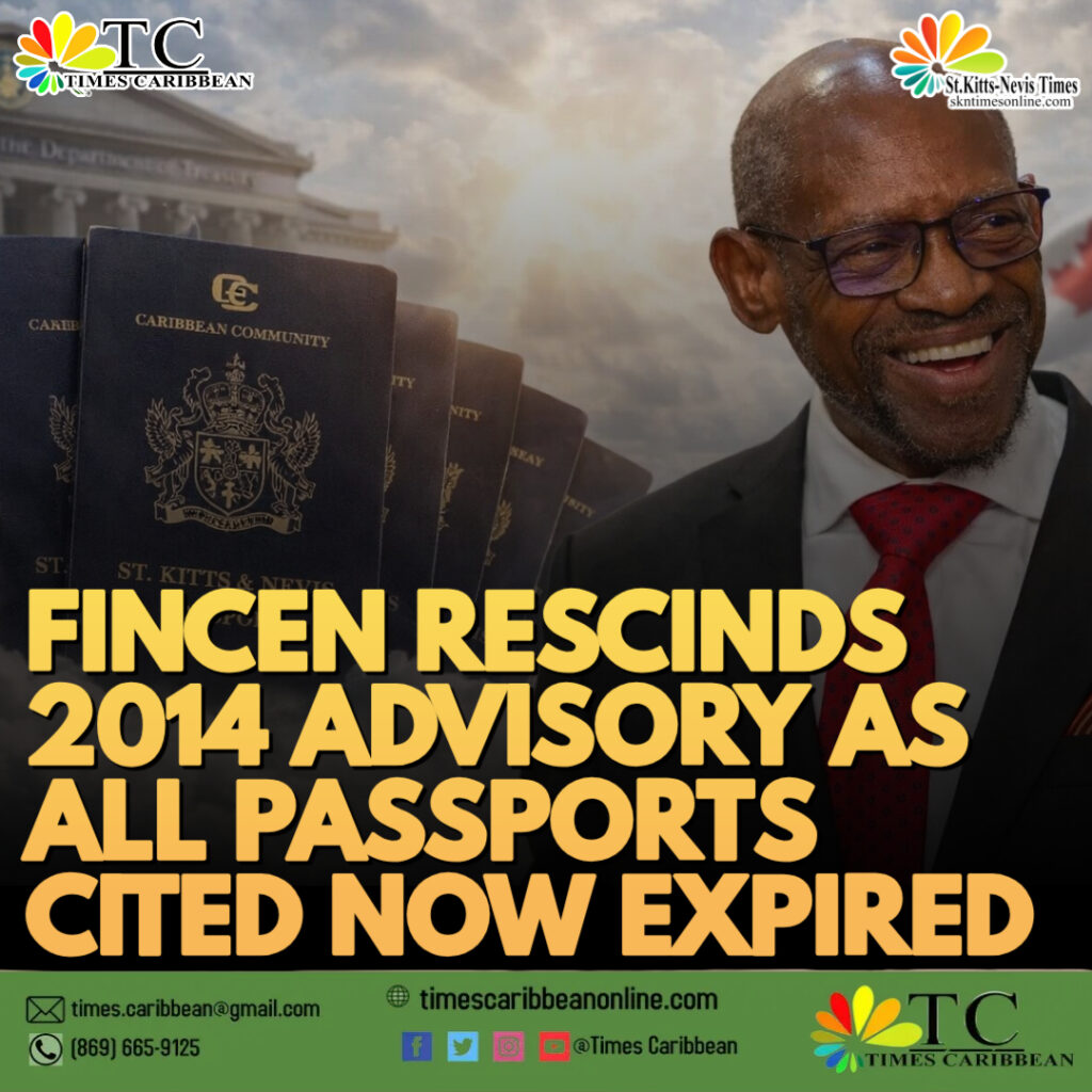 FINCEN RESCINDS 2014 ADVISORY TARGETING ST. KITTS & NEVIS CBI — ALL PASSPORTS CITED NOW EXPIRED, A DECADE-OLD CLOUD LIFTED
