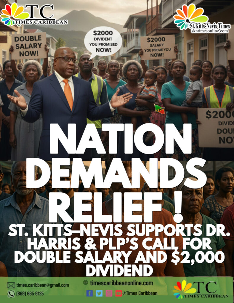NATION DEMANDS RELIEF: ST. KITTS–NEVIS SUPPORTS DR. HARRIS & PLP’S CALL FOR DOUBLE SALARY AND $2,000 DIVIDEND