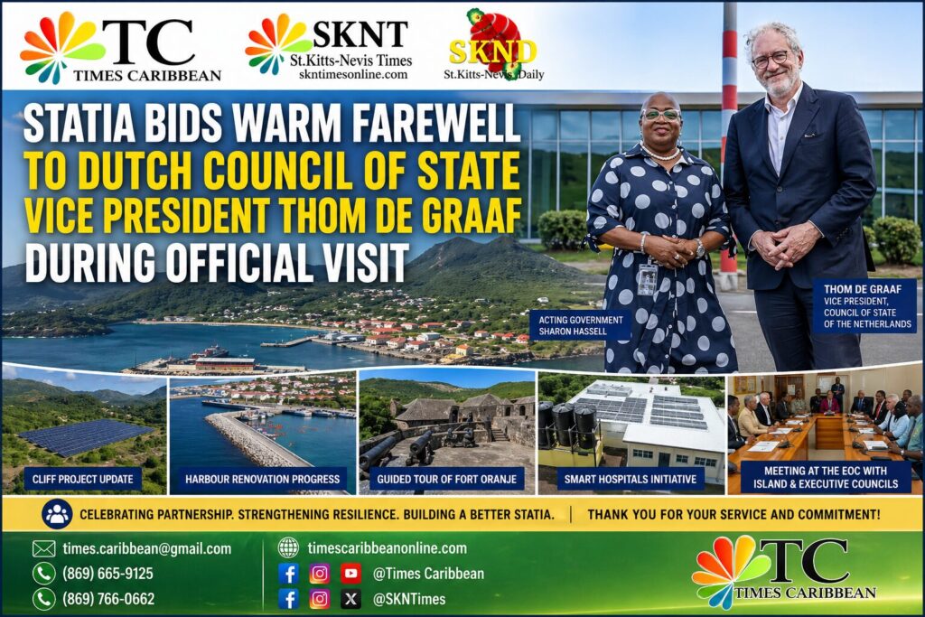 ORANJESTAD, St. Eustatius — The island of St Eustatius on Sunday, April 26, welcomed Mr. Thom de Graaf, Vice President of the Council of State of the Netherlands, for an official farewell visit marked by high-level engagements, infrastructure briefings, and heartfelt tributes.