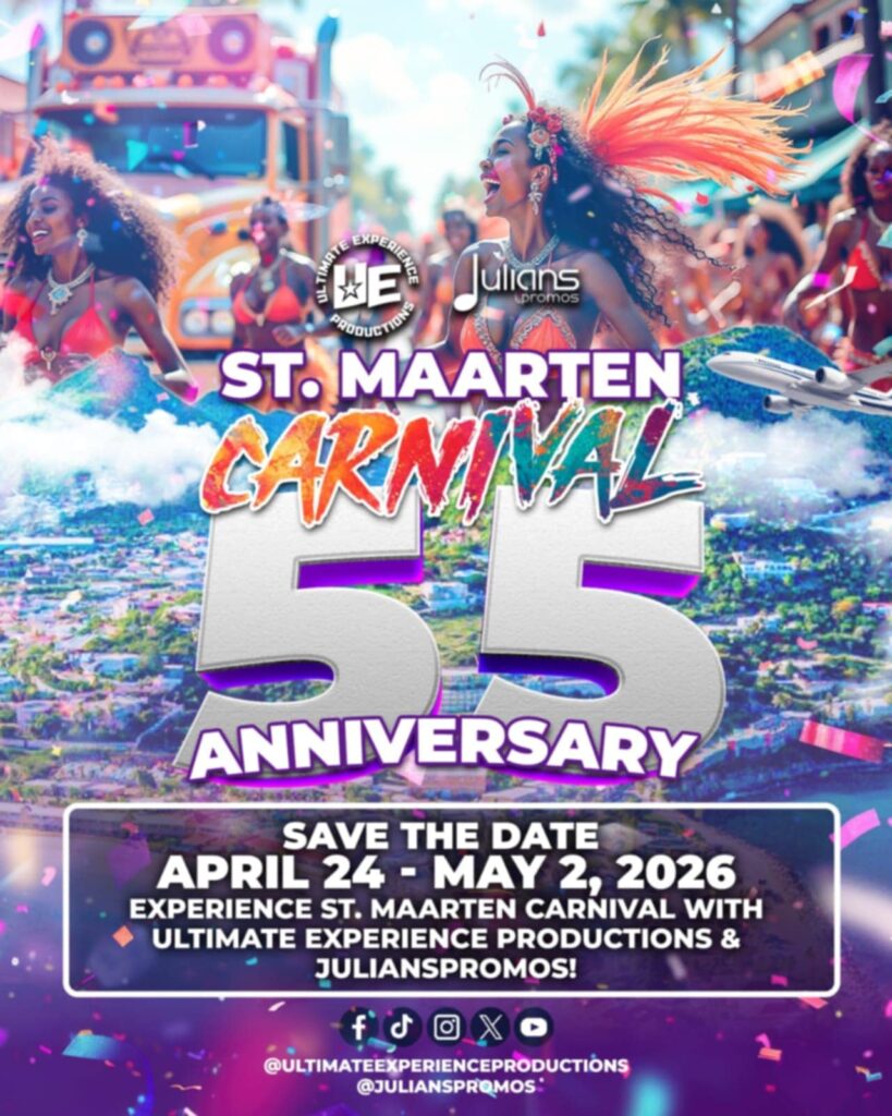 “Fifty‑five years of Carnival isn’t just history—it’s a living pulse,” says the Ultimate Experience Productions team. “Come feel it in your chest, taste it on your tongue, and lose your voice singing until sunrise and beyond – then bathe it all off in our beautiful waters. If you’ve never been, this is the year. If you’ve been once, you already know—you’re coming back.” Mark it down, circle it, tattoo it if you must: APRIL 24 – MAY 2, 2026. Bring your curiosity, your stamina, and your wildest questions. St. Maarten will answer every single one.